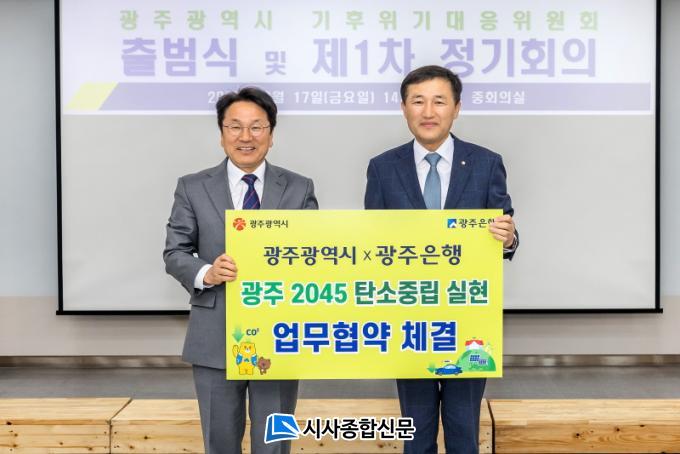 À̹ø ¾÷¹«Çù¾àÀ» ÅëÇØ ±¤ÁÖÀºÇà°ú ±¤ÁÖ±¤¿ª½Ã´Â ±âÈÄÀ§±â °øµ¿ ´ëÀÀ°ú ESG °æ¿µ ½ÇõÀ» ÅëÇØ ±¤ÁÖ°¡ ¡®2045 ź¼ÒÁ߸³µµ½Ã¡¯·Î ¼ºÀåÇϴµ¥ Çù·ÂÇÒ °ÍÀ» ¾à¼ÓÇßÀ¸¸ç, ƯÈ÷ ±¤ÁÖÀºÇàÀº ±¤ÁÖ±¤¿ª½Ã 1±Ý°í¸¦ ´ã´çÇÏ´Â ÀºÇàÀ¸·Î¼ ¿Â½Ç°¡½º °¨Ãà ½Ã¹Î ½Çõ »ç¾÷ Áö¿ø¿¡ Àû±Ø ¾ÕÀå¼±â·Î Çß´Ù.