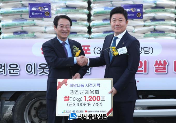 [½Ã»çÁ¾ÇսŹ® = ¿À½ÂÅà ±âÀÚ] °Áø±ºÃ¼À°È¸´Â Áö³ 15ÀÏ, °ü³» ¾î·Á¿î ÀÌ¿ô¿¡ Àü´ÞÇØ´Þ¶ó¸ç 3,100¸¸ ¿ø »ó´çÀÇ ½Ò(10kg) 1,200Æ÷¸¦ ±âºÎÇÏ¿© ÀÌ¿ô»ç¶û ³ª´®À» ½ÇõÇÏ¿´´Ù.