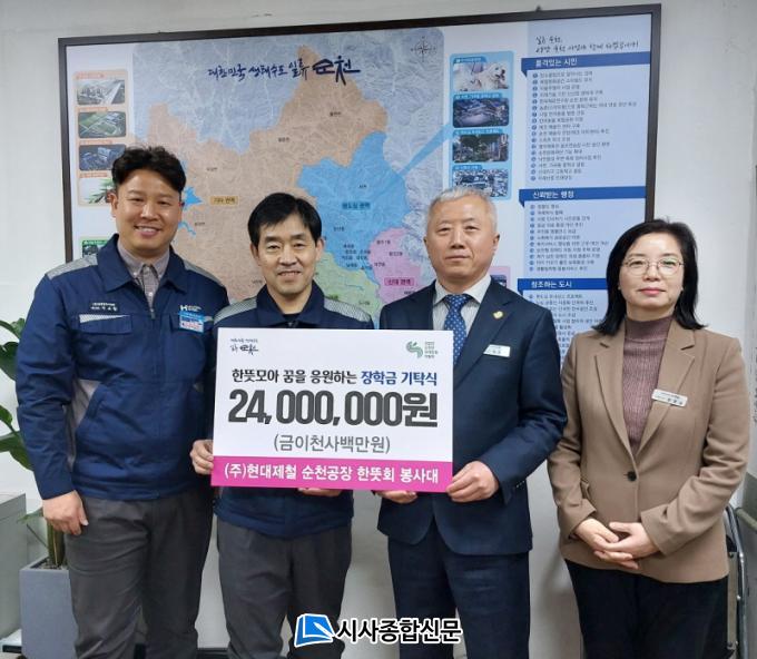 | ¢ßÇö´ëÁ¦Ã¶ ¼øÃµ°øÀå ÇѶæÈ¸ ºÀ»ç´ë, ¼øÃµ½Ã¿¡ ÀåÇÐ±Ý ±âŹ ÀåÇÐ±Ý 2400¸¸¿ø, °ü³» Àú¼Òµæ ÃÊÁß°í Çлý 20¸í¿¡ Áö¿ø |
