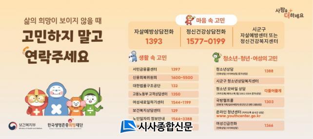ÀÌ¿¡ ºÎ¾È±ºÁ¤½Å°Ç°º¹Áö¼¾ÅÍ´Â ¿ì¿ï°¨ ¹× ÀÚ»ì »ý°¢À¸·Î µµ¿òÀÌ ÇÊ¿äÇÒ ¶§ Á¤½Å°Ç°¼ºñ½º¸¦ ¹ÞÀ» ¼ö ÀÖµµ·Ï À¾¡¤¸é ÇàÁ¤º¹Áö¼¾ÅÍ¿Í º¹Áö°ü µî¿¡ µµ¿ò±â°ü ¾È³» Æ÷½ºÅÍ °Ô½Ã, Çö¼ö¸· °Ô÷ µî Àڻ쿹¹æ È«º¸¸¦ À§ÇØ Èû¾²°í ÀÖ´Ù.
