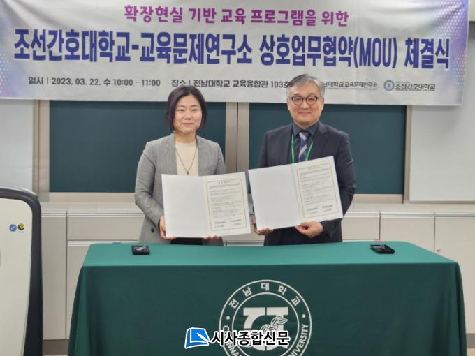 [½Ã»çÁ¾ÇսŹ® = ¿À½ÂÅà ±âÀÚ] Àü³²´ëÇб³ ±³À°¹®Á¦¿¬±¸¼Ò(¼ÒÀå ·ùÁöÇå. »çÁø ¿À¸¥ÂÊ)°¡ Á¶¼±°£È£´ëÇб³(ÃÑÀå ¹Ú¸íÈñ)¿Í 3¿ù 22ÀÏ ¾÷¹«Çù¾àÀ» ¸Î°í, È®ÀåÇö½Ç ±â¹Ý °£È£ ½Ã¹Ä·¹ÀÌ¼Ç ±³À° ÇÁ·Î±×·¥ °³¹ßÀ» À§ÇØ ÈûÀ» ÇÕÄ¡±â·Î Çß´Ù.