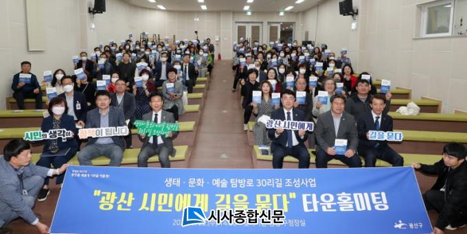 ±¤Áֽà ±¤»ê±¸(±¸Ã»Àå ¹Úº´±Ô)°¡ 22ÀÏ ¸íǰ 30¸®±æÀ» ÁÖÁ¦·Î °³ÃÖÇÑ Å¸¿îȦ¹ÌÆÃ¿¡¼ »ç¾÷ÀÇ ¼º°øÀû ÃßÁøÀ» ¹Ù¶ó´Â ½Ã¹ÎµéÀÇ ´Ù¾çÇÑ Á¦¾ÈÀÌ ½ñ¾ÆÁ³´Ù. À̳¯ ±¤»ê±¸ À̾߱â²Éµµ¼°ü¿¡¼ ±¤»ê±¸ ´ëÇ¥Á¤Ã¥¿¡ ´ëÇÑ ½Ã¹ÎÀÇ°ß ¼ö·ÅÀ» À§ÇÑ ¡®±¤»ê½Ã¹Î¿¡°Ô ±æÀ» ¹¯´Ù¡¯ Ÿ¿îȦ¹ÌÆÃÀÌ °³ÃֵƴÙ.