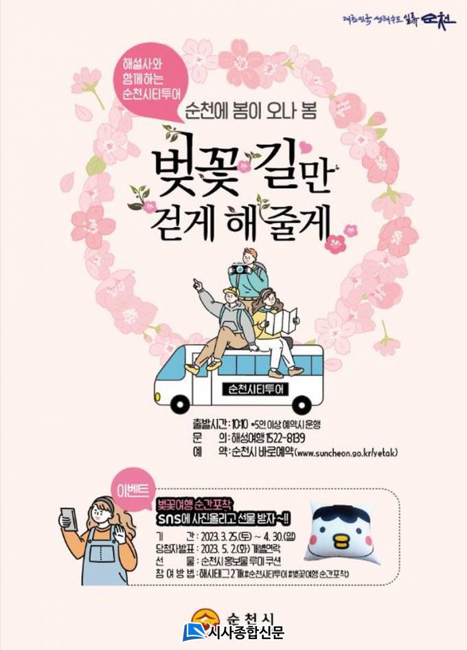 ÇÑÆí, ¼øÃµ½Ã °ü°èÀÚ´Â ¡°À̹ø ½ÃƼÅõ¾î º¢²É¿©ÇàÀ» ÅëÇØ º¸´Ù ¸¹Àº ¿©Çà°´µéÀÌ ¼øÃµÀÇ ¾Æ¸§´Ù¿î º¢²É ±æ¿¡¼ 2023¼øÃµ¸¸±¹Á¦Á¤¿ø¹Ú¶÷ȸ °³¸·À» ÇÔ²² Áñ±â°í ¼øÃµÀÇ ÁÖ¿ä °ü±¤Áö¸¦ È«º¸ÇÒ ¼ö ½Ã°£¿¡ µÇµµ·Ï ÃÖ¼±À» ´ÙÇϰڴ١±°í ¹àÇû´Ù.