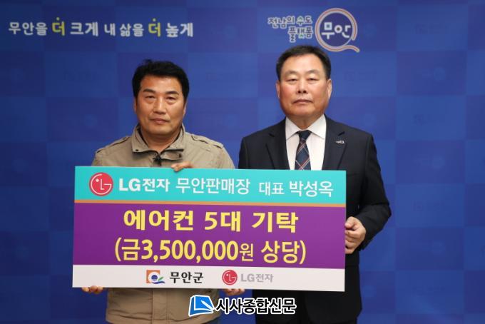 [½Ã»çÁ¾ÇսŹ® = ¿À½ÂÅà ±âÀÚ] ¹«¾È±º(±º¼ö ±è»ê)Àº 22ÀÏ LGÀüÀÚ ¹«¾ÈÆÇ¸ÅÀå ¹Ú¼º¿Á ´ëÇ¥·ÎºÎÅÍ °ü³» Àú¼Òµæ °¡Á¤À» À§ÇÑ ¿¡¾îÄÁ 5´ë¸¦ ±âŹ¹Þ¾Ò´Ù.
