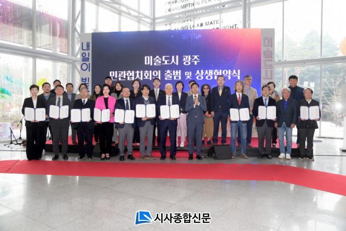 ±¤ÁÖ±¤¿ª½Ã(½ÃÀå °±âÁ¤)´Â 23ÀÏ ±¤Áֽø³¹Ì¼ú°ü 1Ãþ ·Îºñ¿¡¼ ±¤Áֹ̼ú¹®È¸¦ ¼±µµÇÏ´Â 12°³ ±â°ü¡¤´Üü¡¤Çùȸ¡¤Çаè¿Í 100¿© ¸íÀÇ ¹®È¿¹¼ú°è ÀλçµéÀÌ Âü¼®ÇÑ °¡¿îµ¥ ¡®¹Ì¼úµµ½Ã±¤ÁÖ ¹Î°üÇùġȸÀÇ¡¯¸¦ Ãâ¹üÇß´Ù.