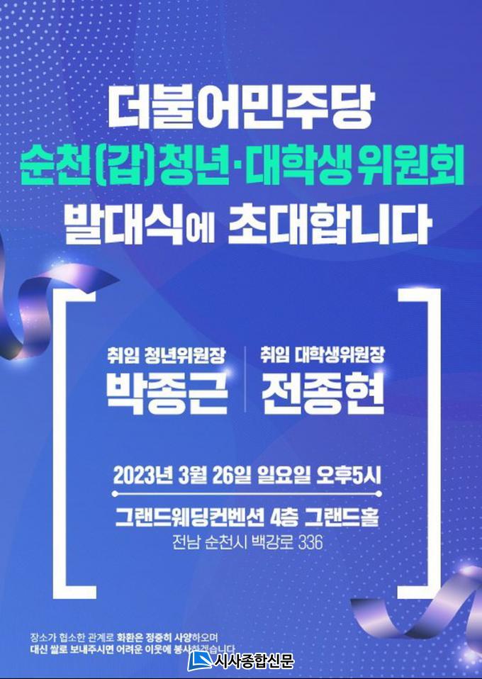 ¹Ú À§¿øÀåÀº ¡°Áö¹æ¼Ò¸ê ½Ã´ë¿¡ ´õ ÆÅÆÅÇØÁø û³âµéÀÇ »îÀ» º¸¸ç ¿ì¸®´Â »õ·Î¿î °¢¿À·Î ¹Ì·¡¸¦ ÁغñÇØ¾ß ÇÑ´Ù¡±¸ç ¡°¼øÃµ½Ã(°©)Áö¿ªÀ§¿øÈ¸ û³âÀ§°¡ ¾ÕÀå¼ º¯È¸¦ ¼±µµÇϰí Á¤Ä¡¹®È¸¦ ¹Ù²Ù´Âµ¥ ÃÑ·ÂÀ» ´ÙÇϰڴ١±°í °ÇÏ°Ô ÇÇ·ÂÇß´Ù.