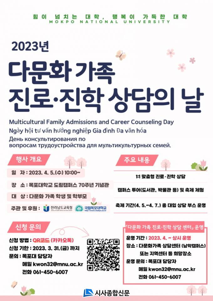 À̹ø¿¡ °³ÃÖÇÏ´Â ´Ù¹®È°¡Á· Áø·Î¡¤ÁøÇÐ »ó´ãÀÇ ³¯ Çà»ç´Â 4¿ù 5ÀÏ ¼ö¿äÀÏ ¿ÀÀü 10½Ã 30ºÐºÎÅÍ ¿ÀÈÄ 5½Ã±îÁö ¸ñÆ÷´ë 70Áֳ⠱â³ä°ü ¹× µµ¸²Ä·ÆÛ½º ÀÏ´ë¿¡¼ ÁøÇàÇϸç, Àü³²Áö¿ª ´Ù¹®È°¡Á¤ÀÇ Çлý°ú Çкθð´Â ´©±¸³ª Âü¿©°¡ °¡´ÉÇÏ´Ù.
