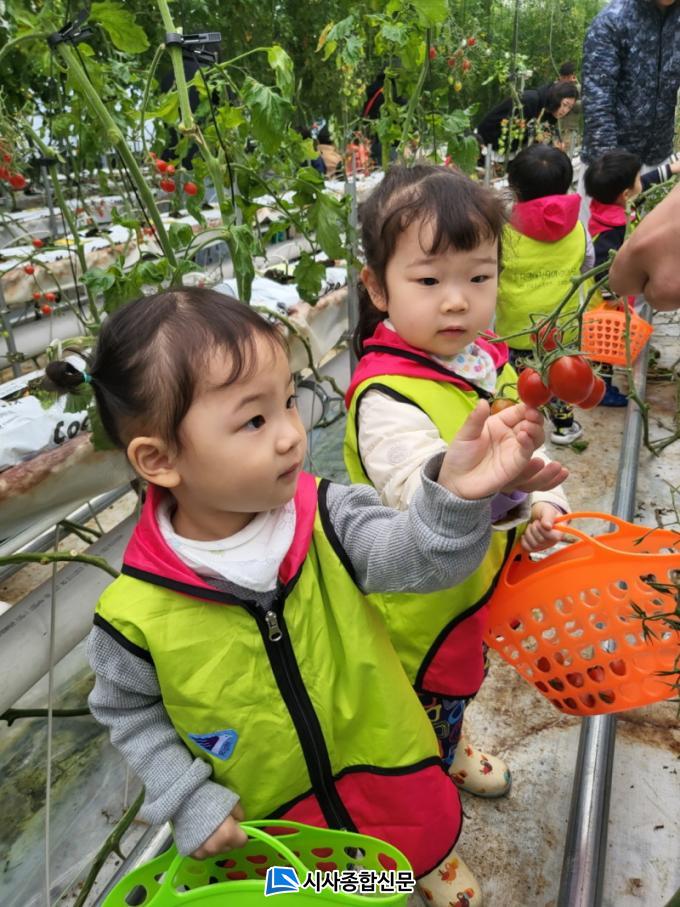 À۳⠵þ±â üÇè¿¡ ÀÌ¾î ¿ÃÇØ´Â Å丶Åä üÇèÀ¸·Î ¾î¸°ÀÌÁý ¾ÆÀ̵éÀ» ¸ÂÀÌÇÑ Ã»³â ³ó¾÷ÀεéÀº Á¶¸·¸¸ ÇÑ ¼ÕÁþ, ¹ßÁþ¿¡ ÀÔ°¡¿¡ ¹Ì¼Ò°¡ ²÷ÀÌÁö ¾Ê¾Ò°í À̹ø üÇè¿¡ Âü¿©ÇÑ ¾î¸°ÀÌµé ¶ÇÇÑ ¼Õ¿¡ ³¤ ÇϾá Àå°©ÀÌ ÃʷϺûÀ¸·Î ¹°µé ¶§±îÁö Å丶Å並 µû°í ¸Àº¸¸ç Áñ°Ì°Ô Áö³Â´Ù.