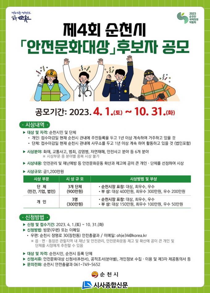 ½ÅûÀº ¼øÃµ½Ã ´©¸®Áý¿¡ °Ô½ÃµÈ °ø¸ð½Åû¼¸¦ ÀÛ¼ºÇÏ¿© ´ç»çÀÚ°¡ Á÷Á¢ ¹æ¹®Çϰųª ¿ìÆí, ÀüÀÚ¿ìÆí ½Åû ¹× °üÇÒ À¾․¸é․µ¿ÀåÀÇ ÃßõÀ» ¹Þ¾Æ 10¿ù 31ÀϱîÁö ¾ÈÀüÃѰý°ú(061-749-56952)·Î ½ÅûÇÏ¸é µÈ´Ù. ¼ö»óÀÚ ¼±¹ßÀº °øÀû °ËÁõ°ú ½É»çÀ§¿øÈ¸¸¦ °ÅÃÄ °áÁ¤Çϸç, ½Ã»ó½ÄÀº 12¿ù °³ÃÖÇÒ ¿¹Á¤ÀÌ´Ù.