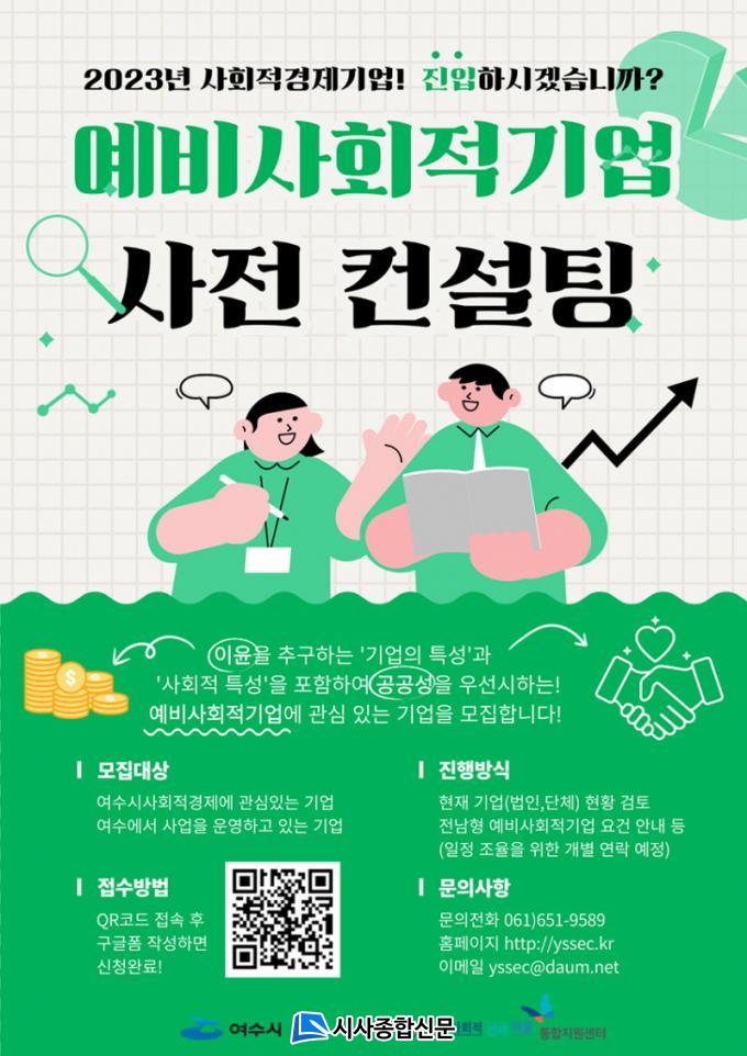 À̹ø ÄÁ¼³ÆÃÀº ¿À´Â 18ÀϱîÁö ÁøÇà ÁßÀÎ Àü³²Çü »çȸÀû±â¾÷ °ø¸ð¿¡ ¼±Á¦ÀûÀ¸·Î ´ëÀÀÇϱâ À§ÇØ ¸¶·ÃµÆ´Ù. ÄÁ¼³ÆÃ ±â°£Àº 10~14ÀÏ, ¿ÀÀü 9½ÃºÎÅÍ ¿ÀÈÄ 6½Ã±îÁö·Î, »ç°æ¼¾ÅÍ Àü¹®ÀηÂÀÌ ÁýÁß »ó´ã¼ºñ½º¸¦ ÁøÇàÇÑ´Ù. »ó´ã¼ºñ½º´Â ¡ã¹ýÀÎ ¹× ¿î¿µ ÇöȲ Á¡°Ë ¡ã»çȸÀû±â¾÷ ¿ä°Ç ¡ã°ø¸ð ½Åû¼·ù µî¿¡ ´ëÇÑ »çÇ×ÀÌ´Ù.