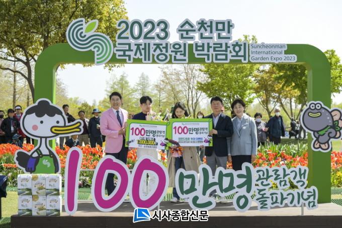 (Àç)¼øÃµ¸¸±¹Á¦Á¤¿ø¹Ú¶÷ȸÁ¶Á÷À§¿øÈ¸(ÀÌ»çÀå ³ë°ü±Ô)´Â 12ÀÏ ±¹°¡Á¤¿ø¿¡¼ 100¸¸ ¹øÂ° ÀÔÀå°´ ÃàÇÏÇà»ç¸¦ °³ÃÖÇß´Ù. À̳¯ 13½Ã 39ºÐ µ¿¹®À¸·Î ÀÔÀåÇÏ¿© 100¸¸ ¹øÂ° ÀÔÀå°´ÀÌ µÈ Çà¿îÀÇ ÁÖÀΰøÀº ¼øÃµ¿¡ °ÅÁÖÇÏ´Â ·ùÇý¿ø(25¼¼)¾¾¿Í ¿©¼ö¿¡ °ÅÁÖÇÏ´Â ±è½Â¿ø(27¼¼)¾¾ Ä¿ÇÃÀ̾ú´Ù.