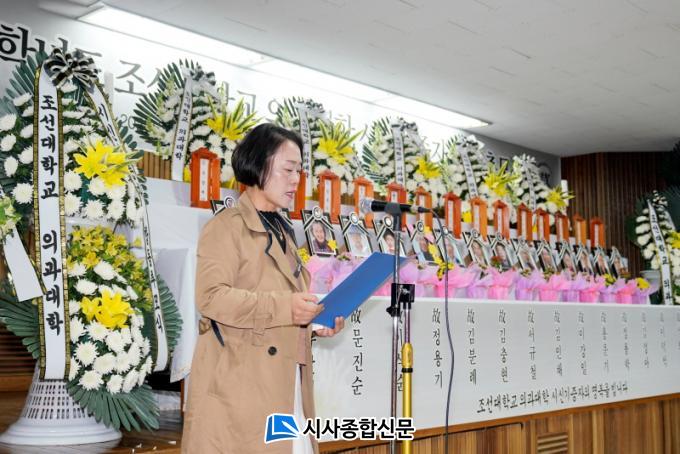 [½Ã»çÁ¾ÇսŹ® = ¿À½ÂÅà ±âÀÚ] Á¶¼±´ëÇб³ Àǰú´ëÇÐÀº 14ÀÏ ½Ã½Å ±âÁõÀÚ¿Í À¯Á·µéÀÇ ¼þ°íÇÑ ¶æÀ» ±â¸®°íÀÚ ÇÕµ¿ Ã߸ð½ÄÀ» °³ÃÖÇß´Ù°í ¹àÇû´Ù.