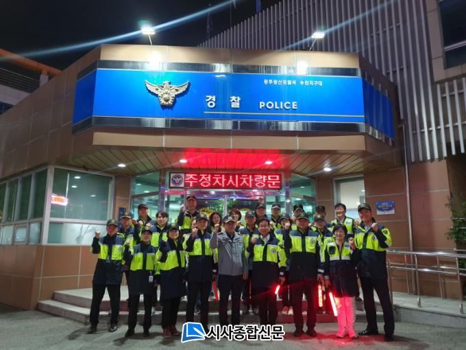 [½Ã»çÁ¾ÇսŹ® = ¿À½ÂÅà ±âÀÚ] ±¤Áֽà ±¤»ê±¸ ¹Úº´±Ô ±¸Ã»ÀåÀÌ Áö³ 19ÀÏ ¡®¾È½Éµµ½Ã ±¤»ê¡¯À» À§ÇØ ¼ö¿ÏÁö±¸ ÀÚÀ²¹æ¹ü´ë(´ëÀå ±èÀç¸í), ±¤»ê±¸ ÀÚÀ²¹æ¹ü¿¬ÇÕȸ(ȸÀå ¾ç¼º·¡), ¼ö¿ÏÁö±¸´ë(´ëÀå ÃÖº´±æ) µî°ú ¼ö¿ÏÁö±¸ ÀÏ´ë¿¡¼ ¹Î‧°ü ÇÕµ¿ ¾ß°£ ¹æ¹ü¼øÂûÀ» ÁøÇàÇß´Ù.