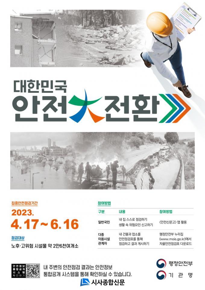 ¡®´ëÇѹα¹ ¾ÈÀüÓÞÀüȯ ÁýÁß ¾ÈÀüÁ¡°Ë¡¯Àº Àç³À̳ª »ç°í ¹ß»ýÀÌ ¿ì·ÁµÇ´Â ½Ã¼³ µî¿¡ ´ëÇØ ÁýÁßÀûÀ¸·Î ¾ÈÀüÁ¡°ËÀ» ½Ç½ÃÇØ À§Çè¿äÀÎÀ» »çÀü¿¡ ¹ß±¼Çϰí ÇØ¼ÒÇϸç, ±¹¹ÎÀÇ ¾ÈÀüÀǽÄÀ» ³ôÀ̱â À§ÇÑ »çȸÀû ¾ÈÀü¿îµ¿ÀÌ´Ù.