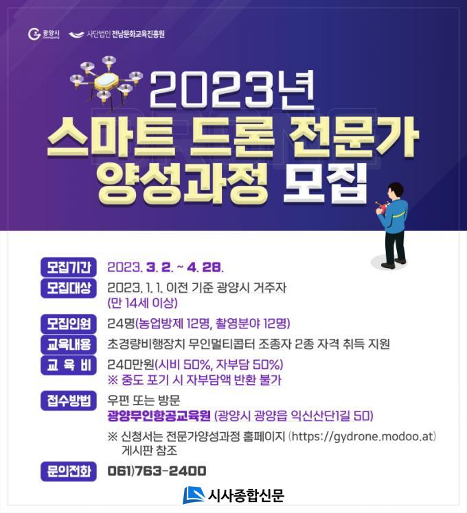 ±¤¾ç½Ã´Â Áö³ 3¿ùºÎÅÍ ¼öÇà±â°ü ¸ðÁý °ø°í¿Í ¼±Á¤ ½ÉÀǸ¦ °ÅÃÄ (»ç)Àü³²¹®È±³À°ÁøÈï¿øÀ» ¡®2023³â ½º¸¶Æ® µå·Ð Àü¹®°¡ ¾ç¼º °úÁ¤¡¯ º¸Á¶»ç¾÷ÀÚ·Î ¼±Á¤Çß´Ù.