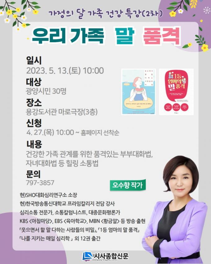 À̹ø °¿¬Àº 5¿ù °¡Á¤ÀÇ ´ÞÀ» ¸Â¾Æ °¡Á· ¼ÒÅëÀÇ ÇöÁÖ¼Ò¸¦ ¤¾îº¸°í, °¥µî°ú ¿ÀÇØ¸¦ Ç®°í ÇູÇÑ °¡Á· °ü°è¸¦ ¸ÎÀ» ¼ö ÀÖ´Â ´Ù¾çÇÑ ½ÇÀü ¼ÒÅë¹ýÀ» Àü´ÞÇÒ ¿¹Á¤ÀÌ´Ù.