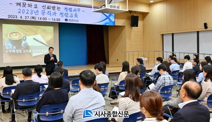 [½Ã»çÁ¾ÇսŹ® = ¿À½ÂÅà ±âÀÚ] ±¤ÁÖ±¤¿ª½Ã ¼±¸(±¸Ã»Àå ±èÀ̰)°¡ °øÁ÷ÀÚµéÀ» ´ë»óÀ¸·Î ÁøÇàÇÑ Ã»·Å±³À°À» ¼ºÈ²¸®¿¡ ³¡¸¶ÃÆ´Ù.
