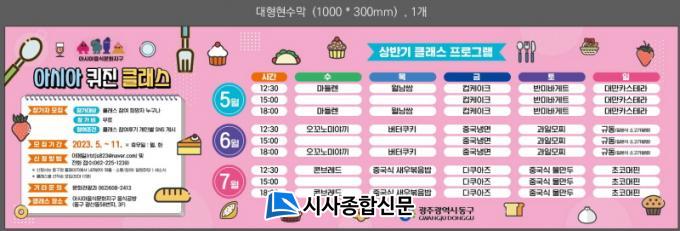¼ö¾÷Àº ÀÌ´ÞºÎÅÍ ¿À´Â 11¿ù±îÁö ¸ÅÁÖ ¼ö¿äÀϺÎÅÍ ÀÏ¿äÀϱîÁö ¹«·á·Î ÁøÇàÇϰí, Âü°¡ºñ¿ëÀº Âü¿© Èı⸦ °³ÀÎ SNS °èÁ¤¿¡ °Ô½ÃÇÏ´Â °ÍÀ¸·Î ´ë½ÅÇÑ´Ù. Âü¿© ¹æ¹ýÀº µ¿±¸Ã» ´©¸®Áý¿¡¼ ½Åû¼¸¦ ³»·Á¹Þ¾Æ À̸ÞÀÏ(rbtjs823@naver.com)·Î Á¢¼öÇÏ¸é µÈ´Ù. ±âŸ ÀÚ¼¼ÇÑ »çÇ×Àº ¹®È°ü±¤°ú ¹®È±â¹ÝÁ¶¼º°è(¢Ï062-608-2413) ¶Ç´Â À½½Ä°ø¹æ(¢Ï062-225-1239)À¸·Î ¹®ÀÇ.