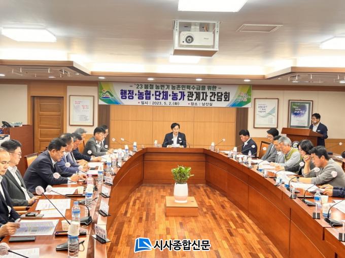 ¿ì½ÂÈñ ¿µ¾Ï±º¼ö, Á¤¿î°© ¿µ¾Ï±ºÀÇȸ °æÁ¦°Ç¼³À§¿øÀå, ÀÓÁ¤ºó ³óÇùÁß¾Óȸ¿µ¾Ï±ºÁöºÎ ÁöºÎÀå µî ³ó¾÷ÀδÜü °ü°èÀÚ, ³ó°¡ ´ëÇ¥ µî 40¿© ¸íÀÇ Âü¼®ÀÚµéÀº, °£´ãȸ¿¡¼ Áö¿ª Çö¾È ÇØ°áÀ» À§ÇØ ´Ù¾çÇÑ ÀǰßÀ» ³Â´Ù.