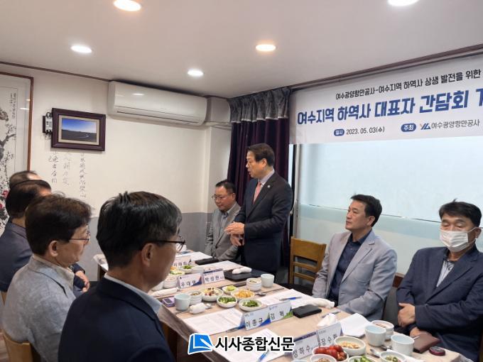 | 3ÀÏ ¿¸° ¡®¿©¼öÁö¿ª ÇÏ¿ª»ç ´ëÇ¥ÀÚ °£´ãȸ¡¯¿¡¼ ¹Ú¼ºÇö ¿©¼ö±¤¾çÇ׸¸°ø»ç »çÀåÀÌ Àλ縻À» Çϰí ÀÖ´Ù.