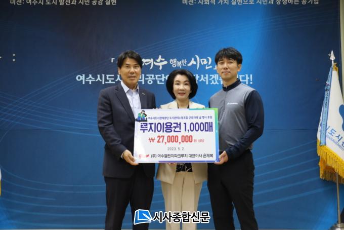 [½Ã»çÁ¾ÇսŹ® = ¿À½ÂÅà ±âÀÚ] ¿©¼ö½Ãµµ½Ã°ü¸®°ø´Ü(ÀÌ»çÀå ±èÀ¯È)Àº ¢ß¿©¼ö縰ÁöÆÄÅ©·çÁö(´ëÇ¥ÀÌ»ç À±À纹)°¡ ·çÁöÀÌ¿ë±Ç 2,700¸¸ ¿ø »ó´çÀ» ÈÄ¿øÇß´Ù°í 4ÀÏ ¹àÇû´Ù.