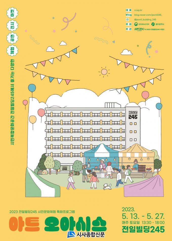 ¡®¾ÆÆ® ¿À¾Æ½Ã½º¡¯ÀÇ ¸ðµç Çà»ç´Â ¹«·áÀ̸ç, ¿ÀÈÄ 1½Ã30ºÐºÎÅÍ 6½Ã±îÁö ÁøÇàµÈ´Ù. Çà»ç¿Í °ü·ÃµÈ ³»¿ëÀº ÀüÀϺôµù245 ½Ã¹Î¹®ÈüÇèÆ¯ÈÇÁ·Î±×·¥ ȨÆäÀÌÁö(http://ccep.kr/ko/)¿Í ÀνºÅ¸±×·¥(@jeonil_building_245_), ºí·Î±×(blog.naver.com/jeonil245_)¿¡¼ È®ÀÎÇÒ ¼ö ÀÖ´Ù. ¹®ÀÇ´Â ÀüÀϺôµù245»ç¾÷´Ü(062-233–0245)À¸·Î ÇÏ¸é µÈ´Ù.