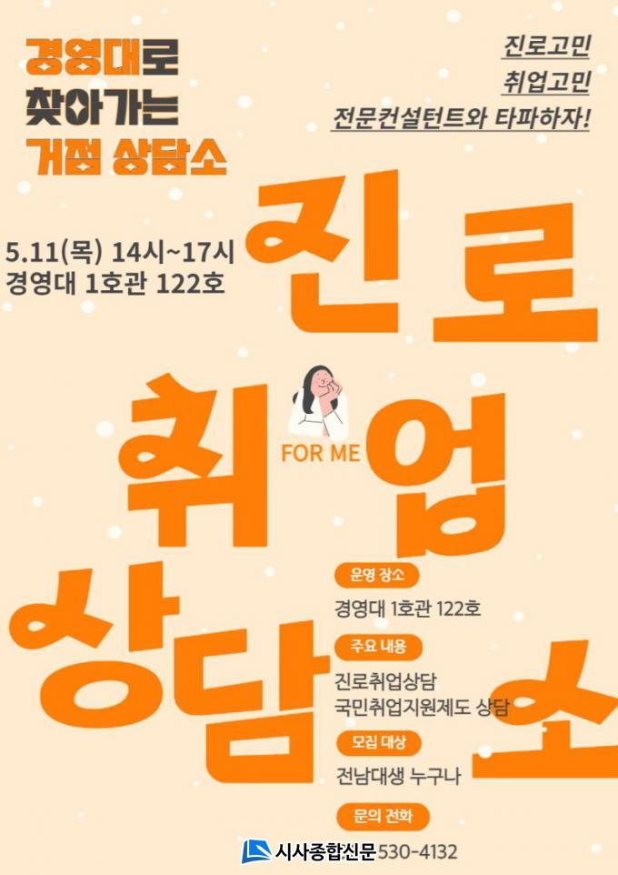 | Àü³²´ëÇÐÀÏÀÚ¸®Ç÷¯½º¼¾ÅÍ, ¡®Ã£¾Æ°¡´Â °ÅÁ¡ »ó´ã¼Ò¡¯ Å« È£ÀÀ Áø·Î¡¤Ãë¾÷¡¤Ã»³â°í¿ëÁ¤Ã¥±îÁö 5¿ù 3ÀÏ ½ÃÀÛ, ¸ÅÁÖ ¸ñ¿äÀÏ |