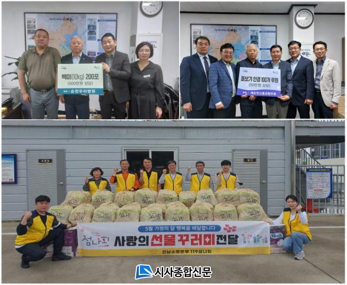 Áö³ 4ÀÏ Àç¼øÃµ°íÈﱺÇâ¿ìȸ(ȸÀå ÁøÀ¯º¹)¿¡¼´Â ³ë¾ÈÀ¸·Î °í»ýÇϽô Àú¼Òµæ ¾î¸£½ÅµéÀ» À§ÇØ µ¸º¸±â 100°³¸¦, 6ÀÏ¿¡´Â Àü³²¼Ò¹æ119 ¼¶³ªÈ¸(ȸÀå ÀÌÁ¾·®)¿¡¼ »ýÇÊǰ²Ù·¯¹Ì 8¸¸ ¿ø »ó´ç »óÀÚ¸¦ 15¸íÀÇ µ¶°Å¾î¸£½Å °¡Á¤¿¡ Á÷Á¢ ¹æ¹®ÇÏ¿© Àü´ÞÇß´Ù.