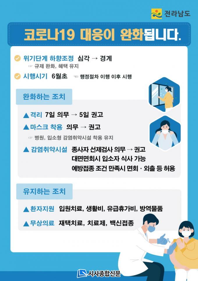 À̹ø Á¶Ä¡·Î È®ÁøÀÚ °Ý¸®´Â 7ÀÏ Àǹ«¿¡¼ 5ÀÏ ±Ç°í·Î ÀüȯµÇ¸ç, ¸¶½ºÅ© Âø¿ë Àǹ«µµ º´¿ø±Þ ÀÌ»ó ÀÇ·á±â°ü°ú ÀÔ¼ÒÇü °¨¿° Ãë¾à½Ã¼³À» Á¦¿ÜÇÑ ¸ðµç Àå¼Ò¿¡¼ Àü¸é ±Ç°í·Î ¹Ù²ï´Ù.