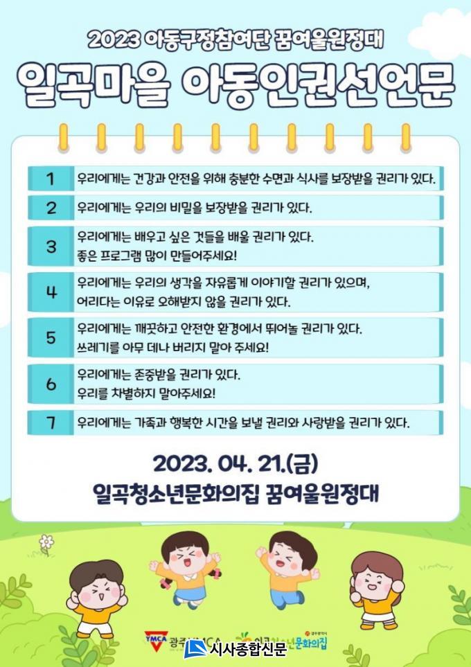 Àϰîû¼Ò³â¹æ°úÈľÆÄ«µ¥¹Ì û¼Ò³âµé·Î ±¸¼ºµÈ ¡®²Þ¿©¿ï¿øÁ¤´ë¡¯´Â Áö³ 4¿ù ¹ß´ë½Ä¿¡¼ ¡®ÀϰÀ» ¾Æµ¿ÀαǼ±¾ð¹®¡¯À» Á÷Á¢ ÀÛ¼ºÇÏ¿´´Ù. ÀÌ ¼±¾ð¹®Àº Àϰîû¼Ò³â¹®ÈÀÇÁý 1Ãþ¿¡ Àü½ÃµÇ¾î 2ÁÖ°£ ±â°üÀ» ¹æ¹®ÇÏ´Â ¾Æµ¿¡¤Ã»¼Ò³âµéÀÌ ÁöÄÑÁ®¾ß ÇÒ ÀڽŵéÀÇ Àαǿ¡ ´ëÇÑ Æ÷½ºÆ®ÀÕÀ» ÀÛ¼ºÇÏ¿© ¼±¾ð¹® Á¦ÀÛ¿¡ Ãß°¡ÀûÀ¸·Î Âü¿©ÇÒ ¼ö ÀÖµµ·Ï ÇÏ¿´´Ù.