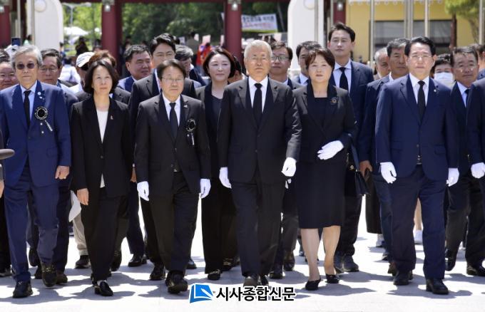 °±âÁ¤ ±¤ÁÖ±¤¿ª½ÃÀåÀº 17ÀÏ ¹®ÀçÀÎ Àü ´ëÅë·É°ú ±èÁ¤¼÷ ¿©»ç, ±è¿µ·Ï Àü³²µµÁö»ç µî°ú ÇÔ²² ±¹¸³5¡¤18¹ÎÁÖ¹¦Áö¸¦ Âü¹èÇß´Ù.