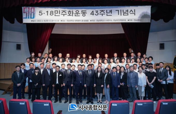 Àü³²´ë 5.18¿¬±¸¼Ò¿Í ¹ÎÁÖµ¿¿ìȸ°¡ °øµ¿ ÁÖ°üÇÑ À̳¯ ±â³ä½Ä¿¡´Â Á¤¼ºÅà Àü³²´ë ÃÑÀåÀ» ºñ·ÔÇÑ ±³¼ö, ÇлýÀ» ºñ·ÔÇØ Á¶¼ºÈñ Ãѵ¿Ã¢È¸Àå°ú ÀÓ¿ø, À§°æÁ¾ ¹ÎÁÖµ¿¿ìȸ ȸÀå°ú ȸ¿ø µî 200¿© ¸íÀÌ Âü¼®Çß´Ù.