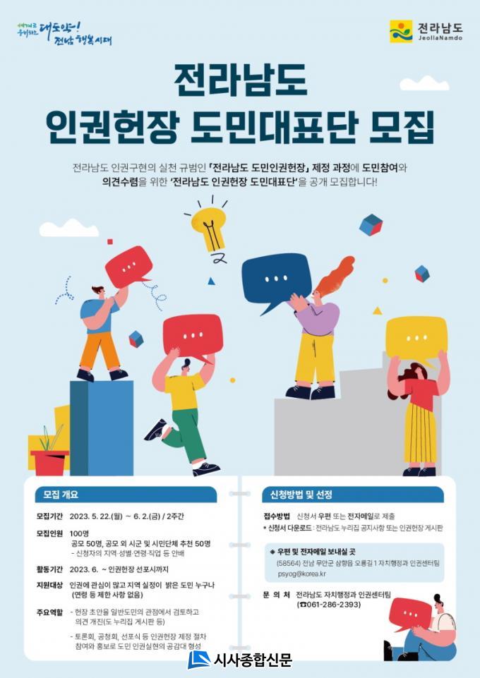 Àü³²µµ´Â Áö³ÇغÎÅÍ »ç·Ê ¼öÁý, Àü¹®°¡ ÀÚ¹® µîÀ» ÅëÇØ µµ¹ÎÀαÇÇåÀå Á¦Á¤ °èȹÀ» ¼ö¸³Çß´Ù. Áö³ 4¿ù¿¡´Â Àü¹®¼ºÀ» ¹ÙÅÁÀ¸·Î ÀαÇÇåÀå ÃÊ¾È ÀÛ¼ºÀ» ´ã´çÇÒ ÃʾÈÀÛ¼ºÀ§¿øÈ¸¿Í ¾Æµ¿¡¤¿©¼º¡¤³ëÀΡ¤´Ù¹®È µî ´Ù¾çÇÑ »çȸ ±¸¼º¿øÀÇ Á¦¾ÈÀ» ±¸Ã¼ÈÇϰí ÇåÀå ³»¿ëÀ» °ËÅäÇÒ °ËÅäÀÚ¹®À§¿øÈ¸¸¦ Æ÷ÇÔÇØ ÃÑ 50¸íÀÇ À뱂 Àü¹®°¡ ¹× ºÐ¾ßº° ´ëÇ¥·Î Àü³²µµ ÀαÇÇåÀå Á¦Á¤À§¿øÈ¸¸¦ ±¸¼ºÇß´Ù.