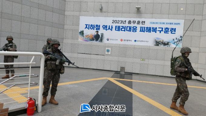 ±¤ÁÖ½Ã¿Í ±¤ÁÖ ¼±¸°¡ °øµ¿ÁÖ°üÀ¸·Î ½Ç½ÃÇÑ À̹ø ÈÆ·ÃÀº ½Ã¹ÎÀÌ ÀÚÁÖ ÀÌ¿ëÇÏ´Â ´ÙÁßÀÌ¿ë½Ã¼³ÀÎ ÁöÇÏö ¿ª»ç¸¦ ´ë»óÀ¸·Î Æø¹ß¹°À» ÀåÂøÇÑ µå·Ð Å×·¯°¡ ¹ß»ýÇØ Æø¹ß·Î ÀÎÇÑ ÀθíÇÇÇØ¿Í ÈÀç°¡ ¹ß»ýÇÑ »óȲÀ» °¡Á¤ÇØ ÁøÇàµÆ´Ù. ƯÈ÷, ¼±¸, ±¤ÁÖ°æÂûû, ±¤ÁÖ¼ºÎ°æÂû¼, 503º¸º´¿©´Ü(5´ë´ë), ¼ºÎ¼Ò¹æ¼, ±¤ÁÖµµ½Ãöµµ°ø»ç, ¹Î°£µå·Ð¿î¿ë´Ü µî °ü°èÀÚ 300¿© ¸íÀÌ Âü¿©ÇØ ¡ãÅ×·¯ ¹ß»ý ¹× Ãʱâ´ëÀÀ ¡ãÈÀçÁø¾Ð Ȱµ¿ ¹× ÀÎ¸í±¸Á¶ ¡ã½Ã¼³¹° ±ä±Þº¹±¸ µîÀ» ½Ç½ÃÇß´Ù.
