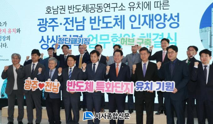 °±âÁ¤ ½ÃÀåÀº ¡°È£³²±Ç ¹ÝµµÃ¼°øµ¿¿¬±¸¼Ò À¯Ä¡´Â ±¤ÁÖ¡¤Àü³² ½Ãµµ¹ÎÀÇ ²ÞÀÎ ¹ÝµµÃ¼Æ¯È´ÜÁö À¯Ä¡ÀÇ ¼ÒÁßÇÑ ¸¶Áß¹°ÀÌ µÆÀ» »Ó ¾Æ´Ï¶ó ÀΰøÁö´É(AI)°ú ÷´Ü»ê¾÷ ÀÎÀç¾ç¼º »ç´Ù¸®ÀÇ ÇÑÁ¶°¢À» ¸ÂÃß°Ô µÆ´Ù¡±¸ç ¡°À̹ø Çù¾àÀº ¸¶Áö¸·±îÁö ¹ÝµµÃ¼Æ¯È´ÜÁö À¯Ä¡¸¦ À§ÇØ ³ë·ÂÇÏÀÚ´Â ´ÙÁüÀÇ ÀÚ¸®¡±¶ó°í ¹àÇû´Ù.