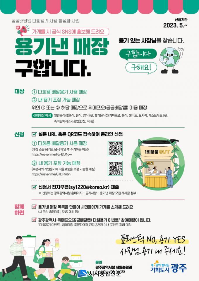 ±¤Áֽô ¡®¿ë±â³½ ¸ÅÀ塯À» ȨÆäÀÌÁö¿Í »çȸ °ü°è¸Á ¼ºñ½º(SNS)¸¦ ÅëÇØ È«º¸ÇÒ ¿¹Á¤ÀÌ´Ù. ¡®¿ë±â³½ ¸ÅÀ塯¿¡ Âü¿©ÇÑ »ç¾÷ÀåÀº ÀÚµ¿À¸·Î ±¤ÁÖ°ø°ø¹è´Þ¾Û ´Ùȸ¿ë±â ±âȹÇà»ç¿¡ Âü¿©ÇÏ°Ô µÈ´Ù.