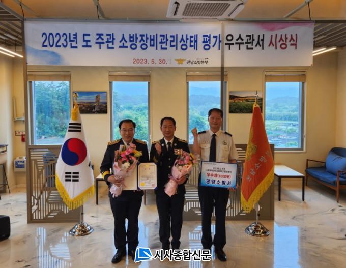 [½Ã»çÁ¾ÇսŹ® = Àå¹Î±Ô ±âÀÚ] ±¤¾ç¼Ò¹æ¼(¼Àå ¼½ÂÈ£)´Â 5¿ù 30ÀÏ Àü³²¼Ò¹æº»ºÎ¿¡¼ °³ÃÖÇÑ ¼Ò¹æÀåºñ°ü¸®»óÅ Æò°¡ ¿ì¼ö°ü¼ ½Ã»ó½Ä¿¡¼ Á¾ÇÕ2À§(¿ì¼ö»ó)¸¦ ¼ö»óÇß´Ù°í ¹àÇû´Ù.
