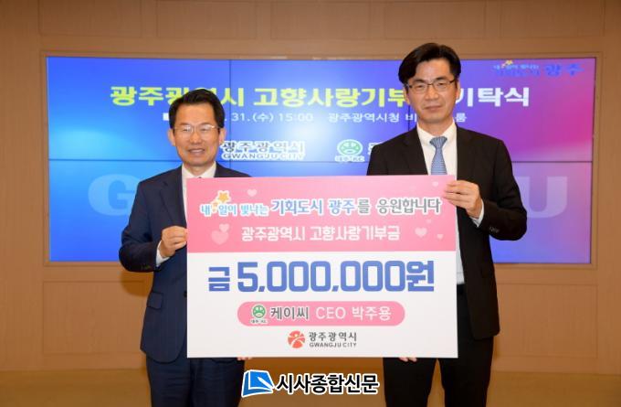 [½Ã»çÁ¾ÇսŹ® = ¿À½ÂÅà ±âÀÚ] ±¤ÁÖ±¤¿ª½Ã(½ÃÀå °±âÁ¤)´Â ¿µ¾Ï ´ëºÒ»ê´Ü¿¡ ¼ÒÀçÇÑ ÄÉÀ̾¾¢ßÀÇ CEO ¹ÚÁÖ¿ë ÃѰýºÎ»çÀåÀÌ 5¿ù31ÀÏ °íÇâ»ç¶û±âºÎ±ÝÀ¸·Î 500¸¸¿øÀ» ±âŹÇß´Ù°í ¹àÇû´Ù.
