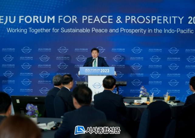 Á¦ÁÖÆ¯º°ÀÚÄ¡µµ´Â 1ÀÏ ¿ÀÈÄ Á¦ÁÖ±¹Á¦ÄÁº¥¼Ç¼¾ÅÍ¿¡¼ ÁøÇàµÈ Á¦18ȸ Á¦ÁÖÆ÷·³¿¡¼ ÆòÈ¿Í ¹ø¿µÀ» À§ÇÑ ¾Æ¼¼¾È Ç÷¯½º ¾ËÆÄ ºñÀüÀ» °øÀ¯ÇÏ¸ç ¾Æ¼¼¾È ¹× ¾Æ¶ø ±¹°¡µé°ú ±³·ù Çù·ÂÀÇ ÀÇÁö¸¦ ´ÙÁ³´Ù.
