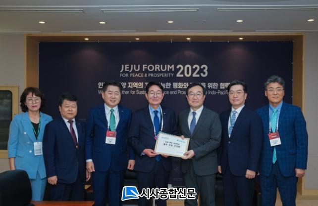 ¿À¿µÈÆ Áö»ç¿Í ±è°æÇÐ Á¦ÁÖµµÀÇȸ ÀÇÀåÀÌ ¿Â µµ¹ÎÀÇ ¿°¿øÀ» ´ã¾Æ ¼¸íÇÑ À̹ø °ÇÀǹ®À» ÅëÇØ ´Ù¾çÇÑ ±¹Á¦È¸ÀÇ ¹× Á¤»óȸÀÇ °³ÃÖ °æÇè°ú ÀÎÇÁ¶ó, À¯³×½ºÄÚ 3°ü¿Õ¿¡ ºû³ª´Â õÇýÀÇ ÀÚ¿¬È¯°æ ¹× ³¯¾¾ µî ±¹Á¦È¸ÀÇ °³ÃÖ ÃÖÀûÁö·Î Á¦ÁÖÀÇ °Á¡°ú APEC Á¦ÁÖ °³ÃÖ¸¦ ÅëÇÑ ±â´ëÈ¿°ú¸¦ °Á¶Çß´Ù.