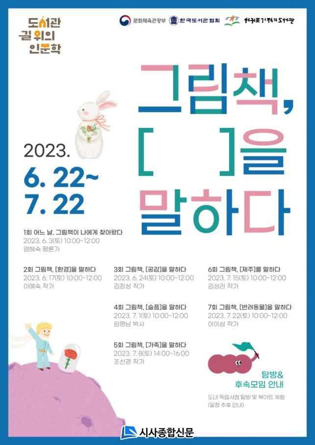 ¶ÇÇÑ, ±×¸²Ã¥ °ü·Ã ÄÜÅÙÃ÷ º¸À¯Ã³ÀÎ µµ³» µ¶¸³¼Á¡ µîÀ» ã¾Æ°¡´Â ޹æ°ú ±×¸²Ã¥ ºÏ¾ÆÆ®¸¦ üÇèÇÏ´Â ÈļӸðÀÓÀ» ÅëÇØ ±×¸²Ã¥À» ´õ ±íÀÌ °æÇèÇÏ´Â ½Ã°£À» Á¦°øÇÑ´Ù. Âü¿© ½ÅûÀº Á¦ÁÖµµ °ø°øµµ¼°ü ȨÆäÀÌÁö(www.jeju.go.kr/lib)¸¦ ÅëÇØ ¿Â¶óÀÎÀ¸·Î ½ÅûÇÒ ¼ö ÀÖÀ¸¸ç, ±×¸²Ã¥À» ±íÀÌ ¾Ë°í ½ÍÀº µµ¹ÎÀ̶ó¸é ´©±¸³ª Âü¿© °¡´ÉÇÏ´Ù.
