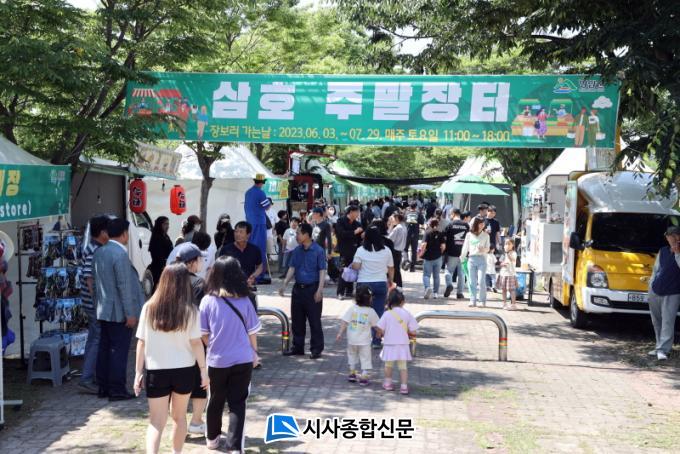 À̳¯ ½ÃÀÛµÈ »ïÈ£ÁÖ¸»ÀåÅÍ´Â 7¿ù 29ÀϱîÁö °è¼ÓµÈ´Ù. ÀÌ ±â°£ ¸ÅÁÖ Åä¿äÀÏ ¿ÀÀü 11½ÃºÎÅÍ ¿ÀÈÄ 6½Ã±îÁö ÀåÅͰ¡ ¿¸°´Ù. ¹®È¿¹¼ú°ø¿¬Àº °³Àå ù³¯°ú ¸¶Âù°¡Áö·Î ¿ÀÈÄ 2½Ã¿Í 4½Ã µÎ Â÷·Ê À̾îÁø´Ù.