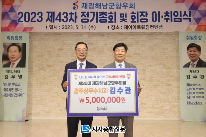 | ÇØ³²±º °íÇâ»ç¶û±âºÎÁ¦, ±è¼ö°ü Àç±¤ÇØ³²±ºÇâ¿ìȸÀå 500¸¸¿ø ±âŹ |