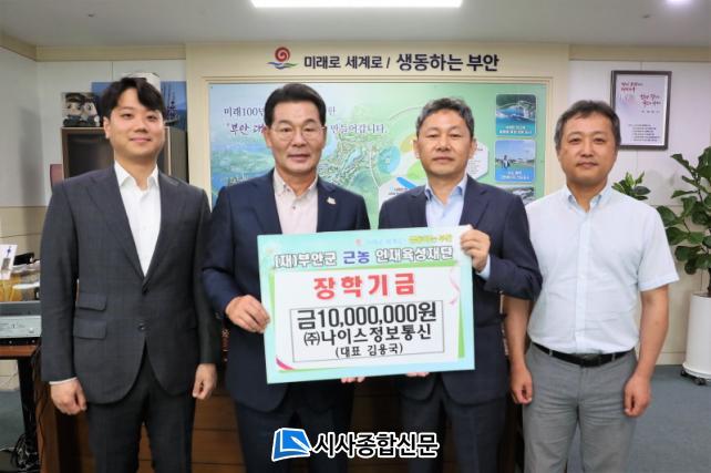 [½Ã»çÁ¾ÇսŹ® = ¿À½ÂÅà ±âÀÚ] ¢ß³ªÀ̽ºÁ¤º¸Åë½Å(´ëÇ¥ ±è¿ë±¹)Àº Áö³ 8ÀÏ ºÎ¾È±º ±Ù³óÀÎÀçÀ°¼ºÀç´ÜÀ» ¹æ¹®ÇÏ¿© Áö¿ª ÀÎÀçÀ°¼ºÀ» À§ÇÑ ÀåÇÐ±Ý 1õ¸¸¿øÀ» ±âŹÇß´Ù.