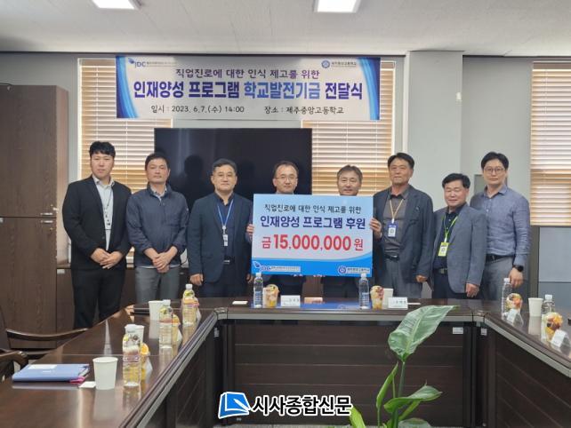 [½Ã»çÁ¾ÇսŹ® = °í¼º¹Î ±âÀÚ] Á¦ÁÖÁß¾Ó°íµîÇб³(±³Àå ¿ÀÀçÈ£)´Â Áö³ 6¿ù 7ÀÏ, Á¦ÁÖ±¹Á¦ÀÚÀ¯µµ½Ã°³¹ß¼¾ÅÍ(JDC)·ÎºÎÅÍ Á÷¾÷ Áø·Î ÀÎ½Ä Á¦°í¸¦ À§ÇÑ ÀÎÀç¾ç¼º ÇÁ·Î±×·¥À» À§ÇÑ Çб³¹ßÀü±â±Ý 1,500¸¸ ¿øÀ» Àü´Þ¹Þ¾Ò´Ù.