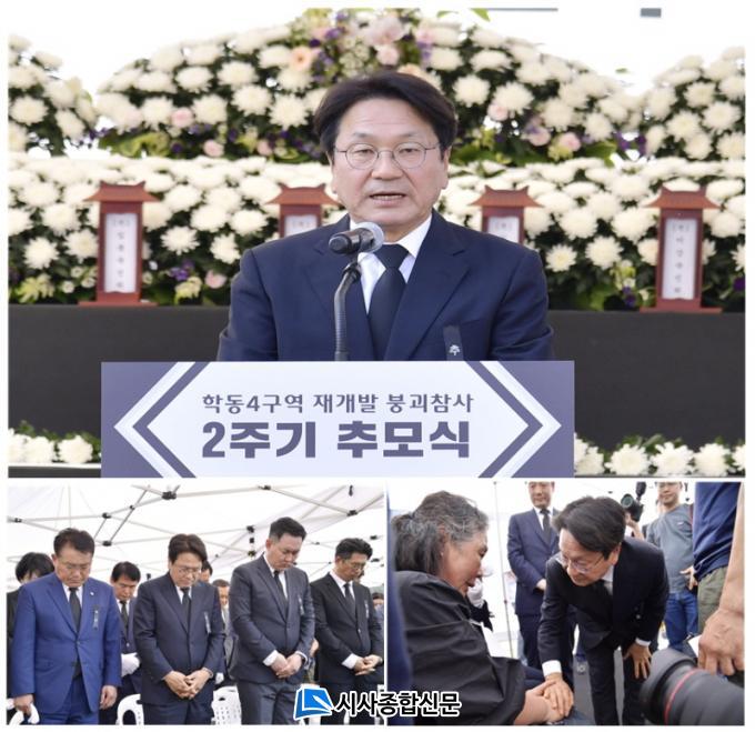 À̳¯ ±¤ÁÖ½Ã¿Í µ¿±¸´Â Âü»ç ½Ã°¢ÀÎ ¿ÀÈÄ 4½Ã22ºÐ Çе¿4±¸¿ª Àç°³¹ß ºØ±«Âü»ç ÇöÀå¿¡¼ Èñ»ýÀÚÀÇ ³ÌÀ» À§·ÎÇÏ°í ¾ÈÀüÀǽÄÀ» ´ÙÁö´Â 2ÁÖ±â Ã߸ð½ÄÀ» ÁøÇàÇß´Ù.