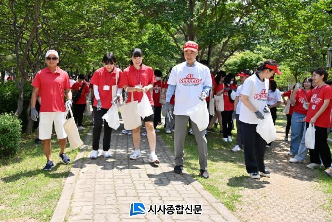 ±èÀ̰ ¼±¸Ã»Àå°ú Áֹεé, ±×¸®°í AIÆäÆÛ½º Àå¸ÅÆ© ±¸´ÜÁÖ¿Í ¼±¼ö µî 300¿© ¸íÀº À̳¯ »ó¹«½Ã¹Î°ø¿ø ³» ÀΰøÈ£¼ö¡¤¿îµ¿Àå »êÃ¥·Î, ¸Ç¹ß·Î(ÖØ)¸¦ °ÉÀ¸¸ç ¾²·¹±â¸¦ Áݰí ÁÖº¯ ȯ°æ Á¤ºñ¿¡ ³ª¼¹´Ù. ¶Ç AIÆäÆÛ½º¸¦ ȯ¿µÇϰí ÀÀ¿øÇϱâ À§ÇÑ ±â³äÃÔ¿µ, ÄûÁî °ÔÀÓ µî ´Ùä·Î¿î À̺¥Æ®µµ ÇÔ²² ÁøÇàµÆ´Ù.