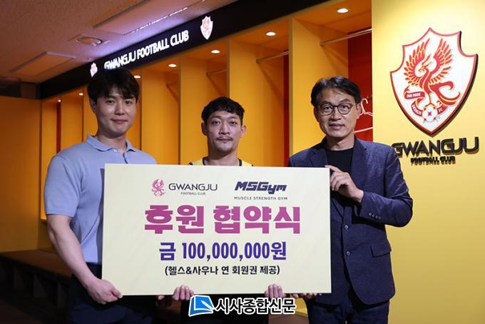 ±¤ÁÖ´Â Áö³ 12ÀÏ ±¤ÁÖÃ౸Àü¿ë±¸Àå¿¡¼ ¿¥¿¡½ºÁü Áö¸í±Ô, ¹®Àϵµ °øµ¿´ëÇ¥¿Í ±¤ÁÖFC ÀÓ±ÙÈÆ °æ¿µº»ºÎÀåÀÌ Âü¼®ÇÑ °¡¿îµ¥ ÇÇÆ®´Ï½º ÀÌ¿ë±Ç ÈÄ¿ø Çù¾à½ÄÀ» °¡Á³´Ù°í ¹àÇû´Ù.