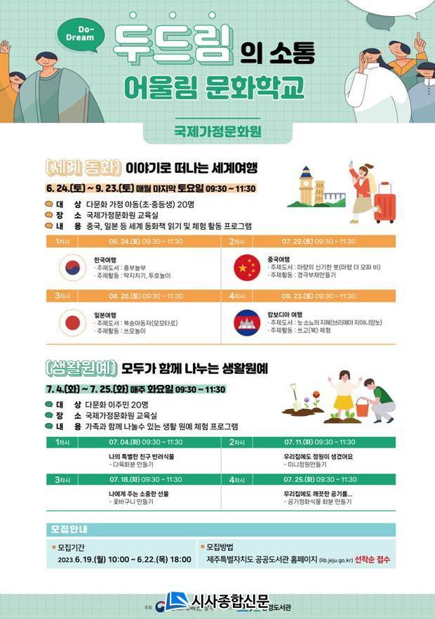 ¡¸µÎµå¸²(Do-Dream)ÀÇ ¼ÒÅë ¾î¿ï¸² ¹®ÈÇб³¡¹´Â µµ¼°ü ÀÌ¿ë ¹æ¹®ÀÌ ¾î·Á¿î ´Ù¹®È °¡Á¤À» À§ÇØ ¡°Ã£¾Æ°¡´Â µ¶¼¹®È ÇÁ·Î±×·¥¡±°ú ´Ù¹®È ¾î¸°ÀÌ¿Í Áö¿ª ¾î¸°À̵éÀÌ °°ÀÌ Çùµ¿ÇÏ´Â ¡°¾Æµ¿ ÅëÇÕ ÇÁ·Î±×·¥¡±À¸·Î ±¸¼ºµÇ¾î ÀÖ´Ù.