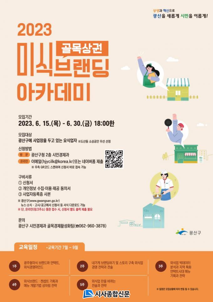 ¡®2023 °ñ¸ñ»ó±Ç ¹Ì½Ä ºê·£µù ¾ÆÄ«µ¥¹Ì¡¯´Â ±¤»ê±¸ ´ëÇ¥ ½Ä´çÀ» À°¼ºÇϰí, Áö¿ª °ñ¸ñ»ó±ÇÀ» Ȱ¼ºÈÇϱâ À§ÇØ ÃßÁøµÆ´Ù. ±¤»ê±¸ °ü³» »ç¾÷ÀåÀ» µÐ ¿ä½Ä¾÷ÀÚ¸¦ ´ë»óÀ¸·Î Çϸç, ¡®2021³â ÇàÁ¤¾ÈÀüºÎ °ñ¸ñ°æÁ¦ ȸº¹Áö¿ø»ç¾÷¡¯ °ø¸ð¿¡ ¼±Á¤µÈ µµ»êµ¿ °ñ¸ñ»ó±Ç¿¡¼ ¿µ¾÷Çϰí ÀÖ´Â ¼Ò»ó°øÀÎÀ» ¿ì¼± ¼±Á¤ÇÑ´Ù.